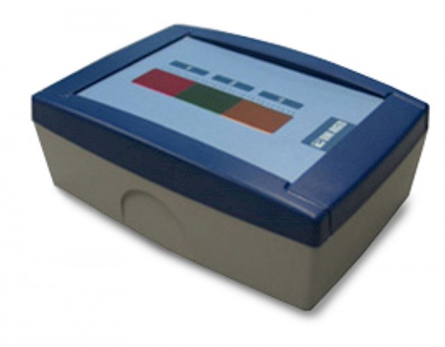 Caixa ABS com semáforo de 3 cores, sinal acústico programável e controlador gráfico de barras para ligação a visores da serie DFW y 3590 em ABS.