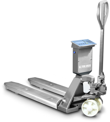 Porta paletes em aço inox com pesagem electrónica integrada multi escala.